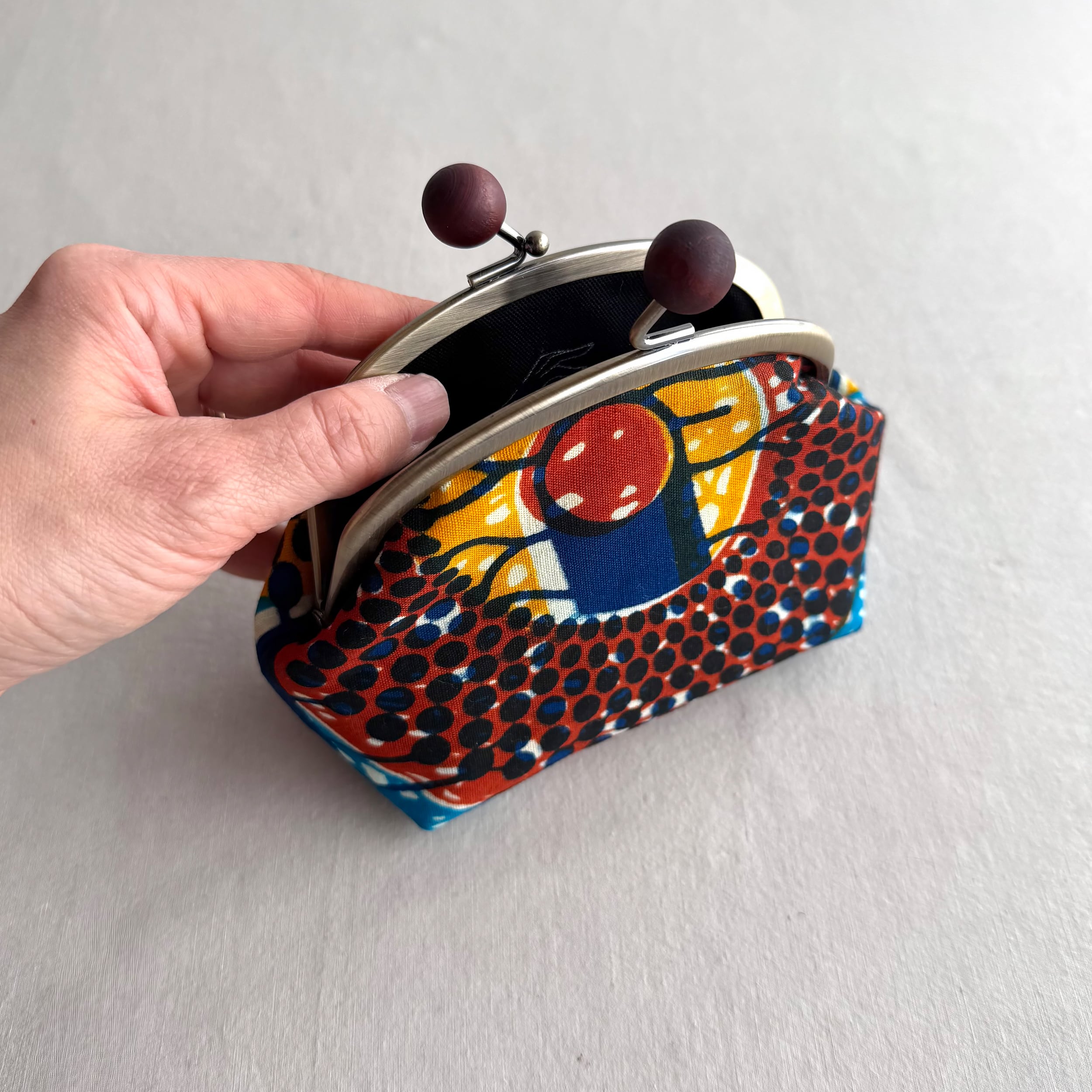 手に馴染む厚みがあり、しっかりとしたつくりのがま口です。