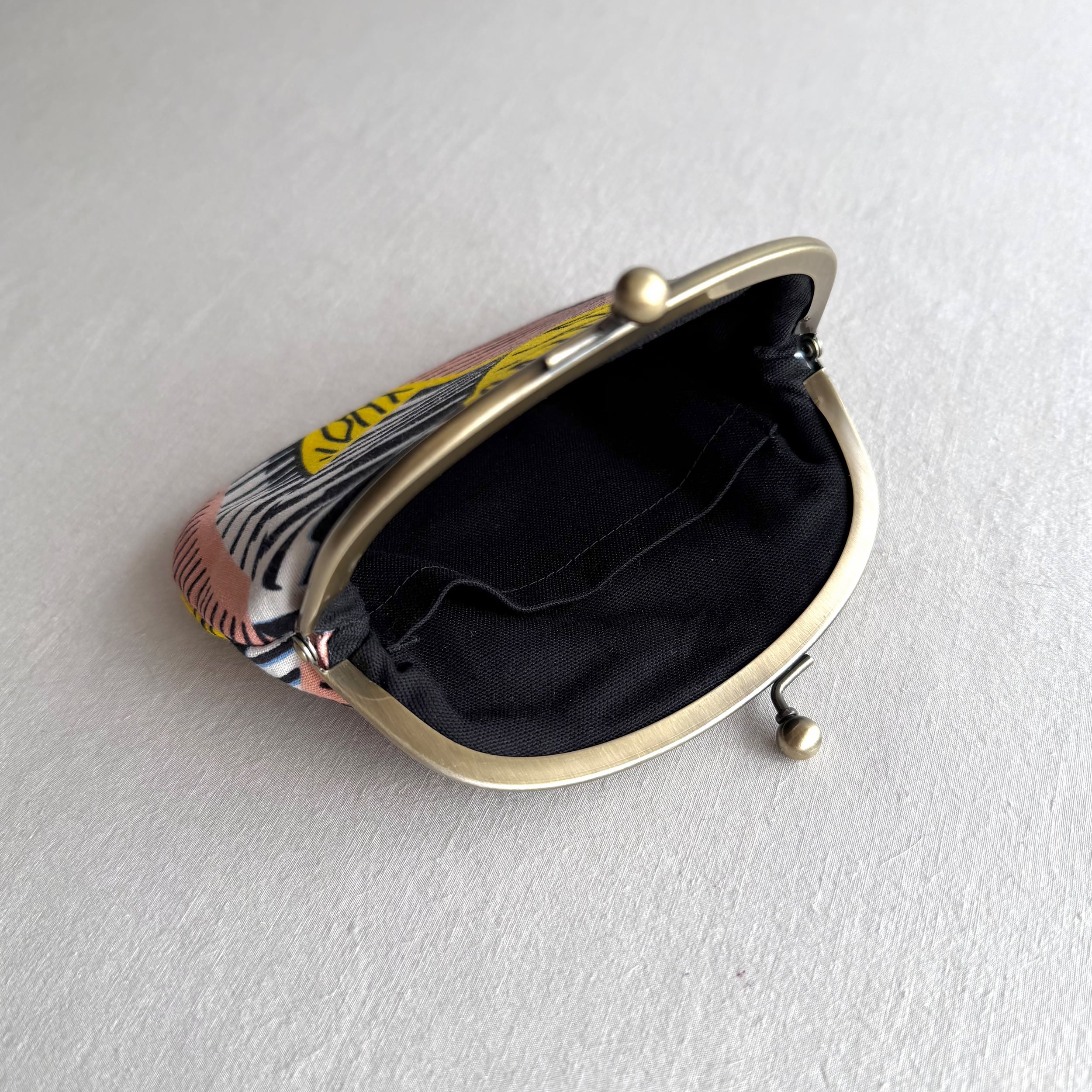 ・口金と袋を紙素材で固定しているため、水に弱く、丸洗いなどはご遠慮ください。