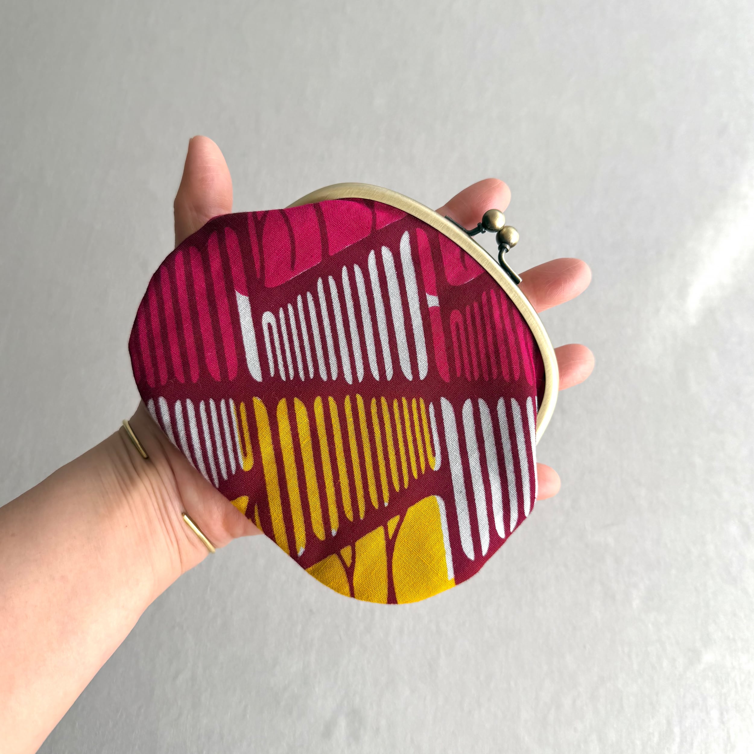 手に馴染む厚みがあり、しっかりとしたつくりのがま口です。