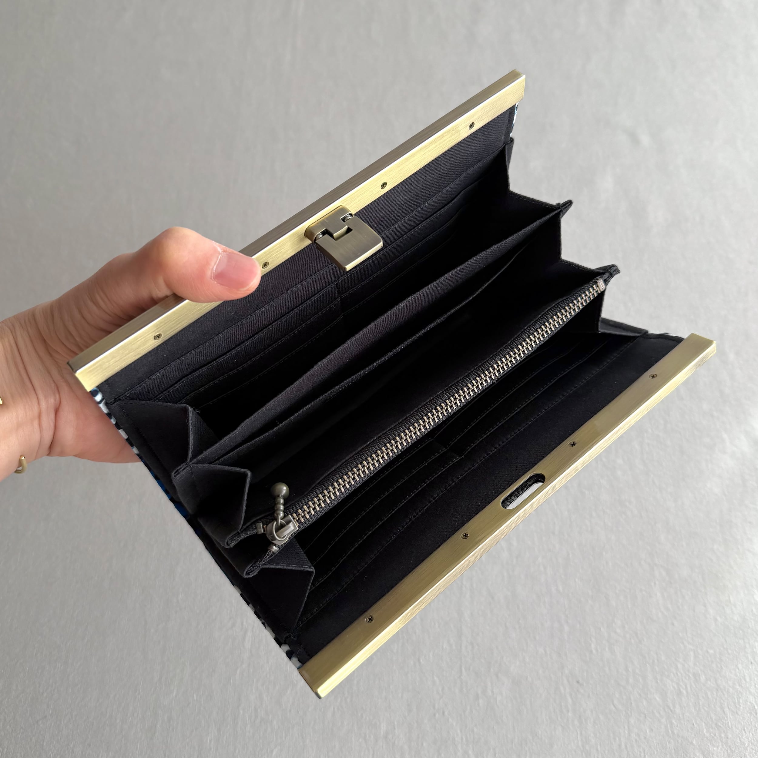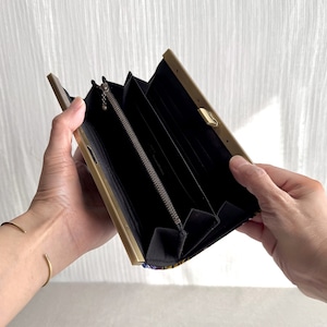 開閉がスムーズな口金式の長財布。