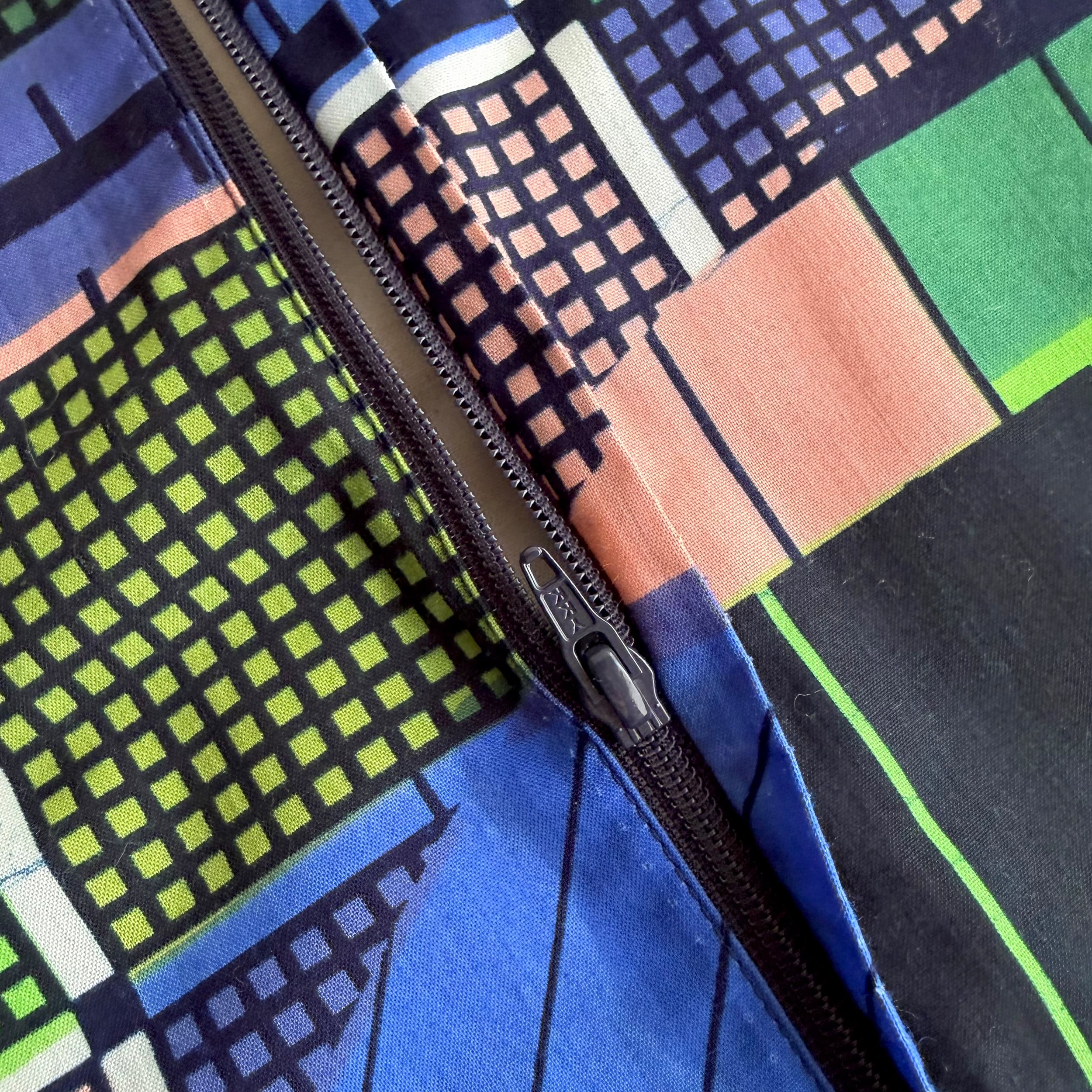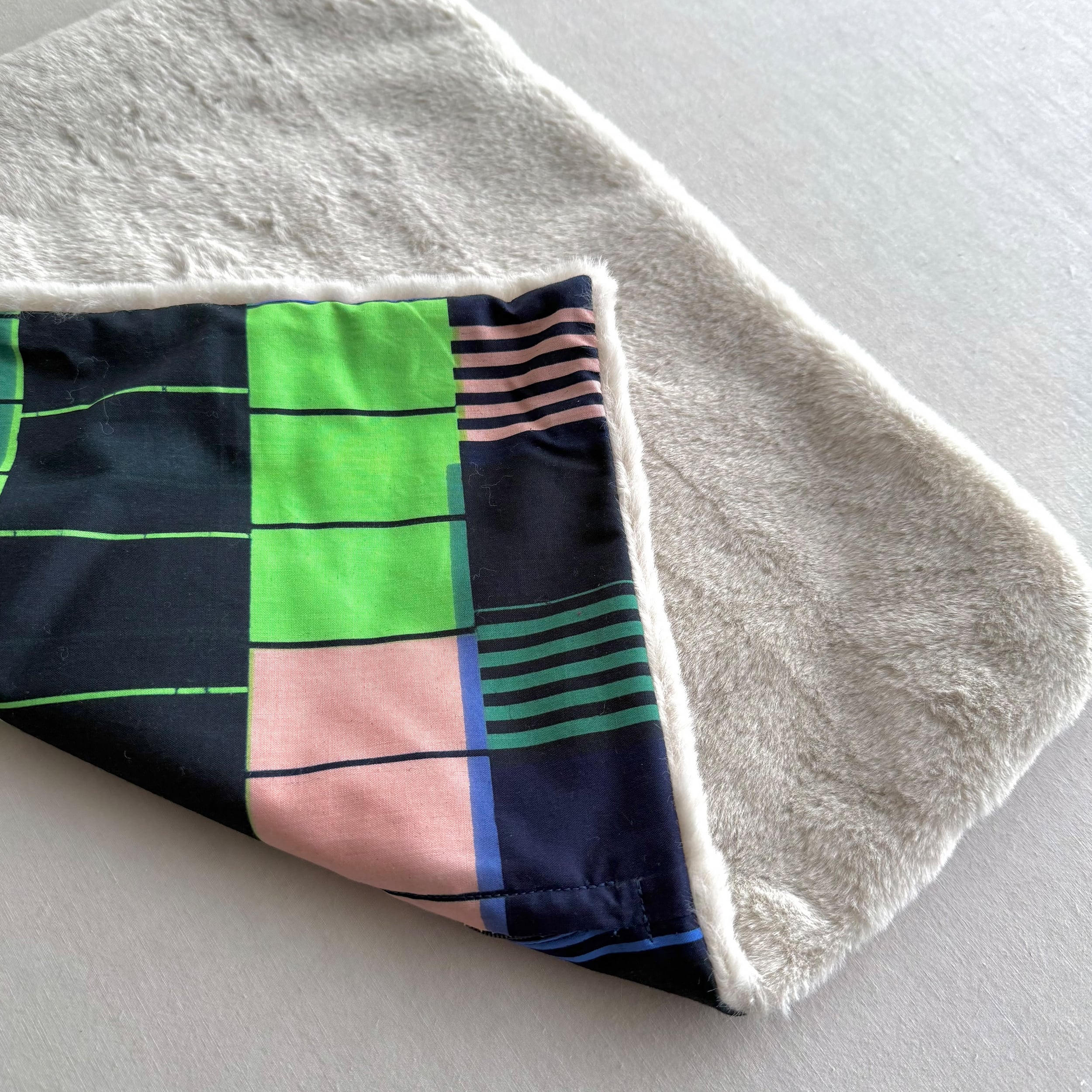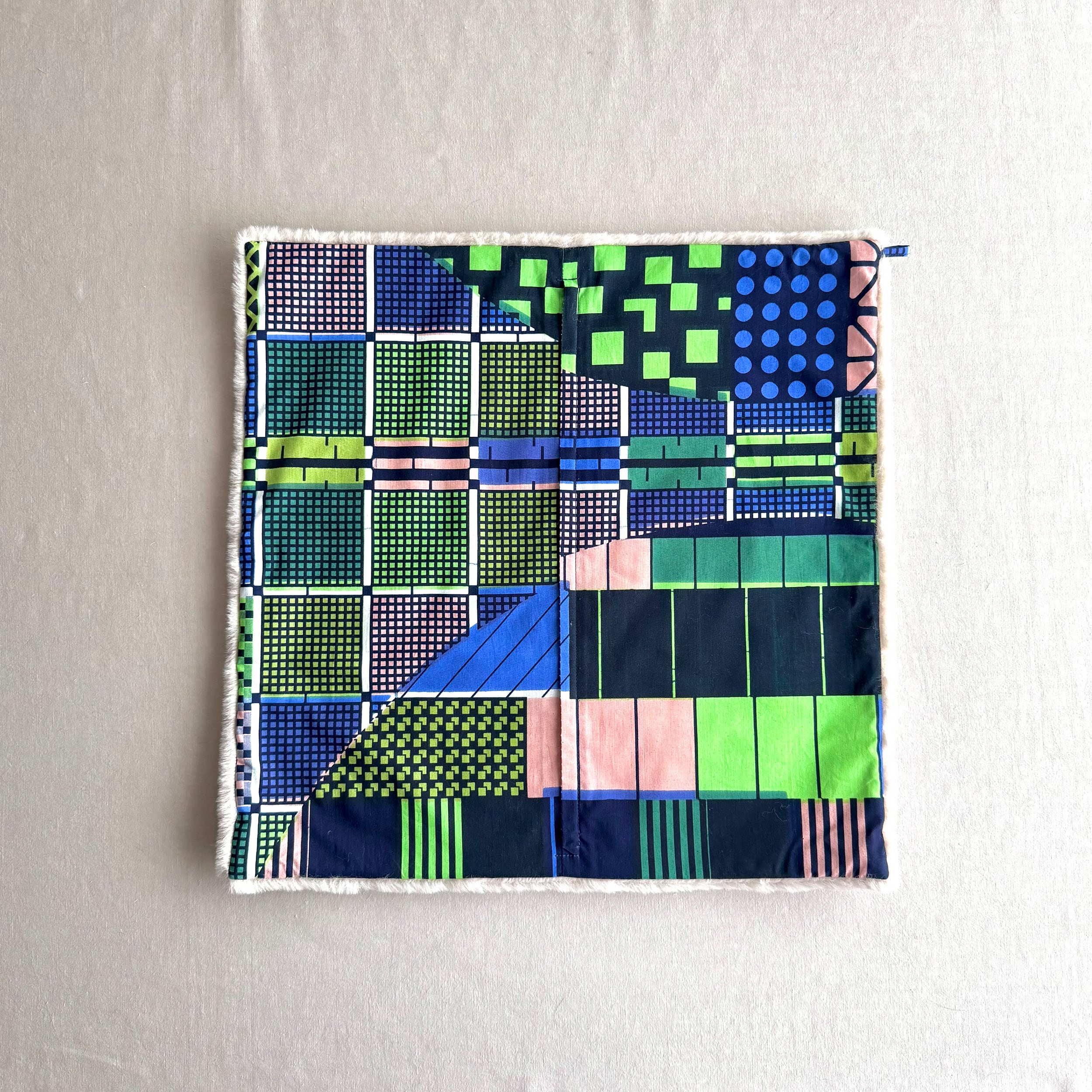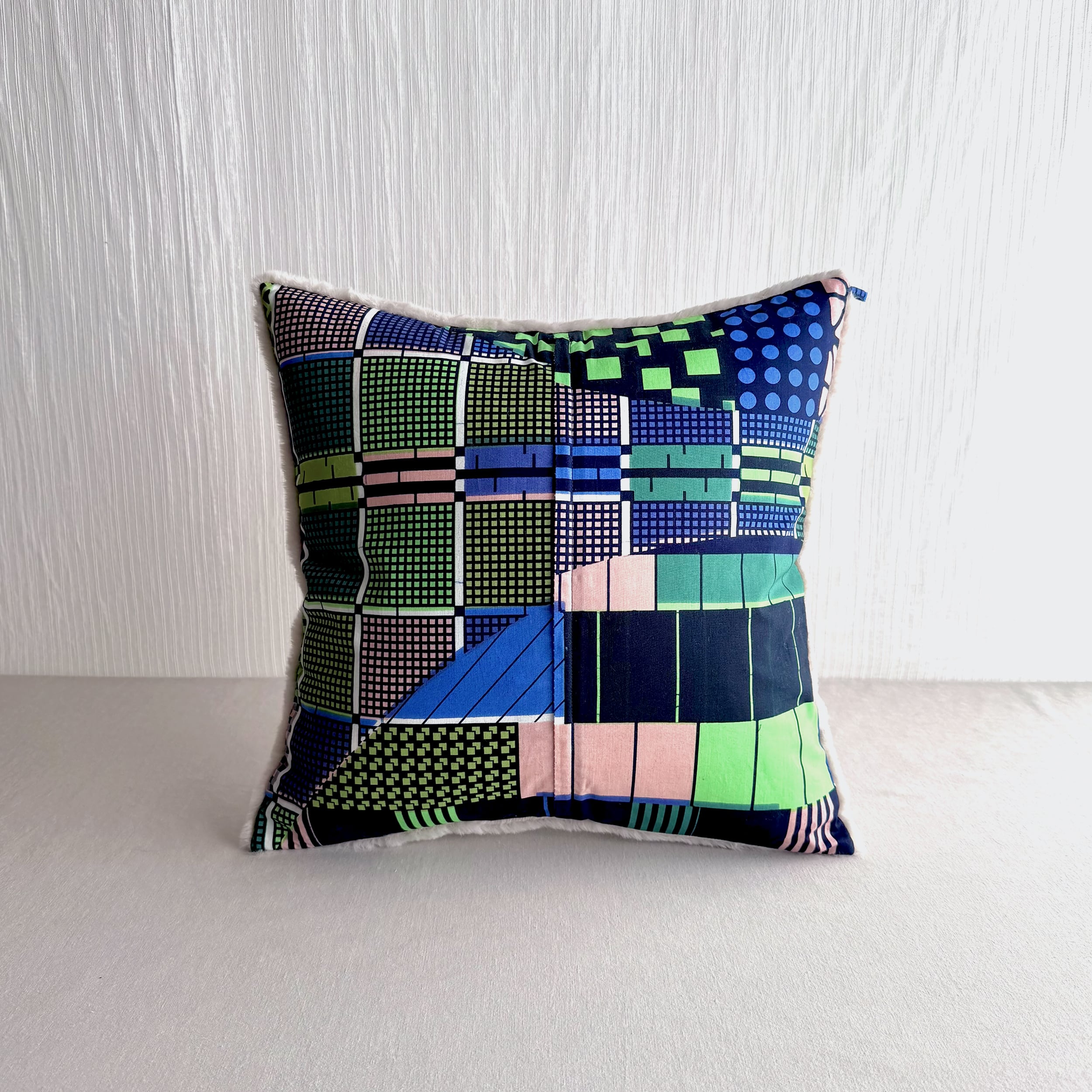アフリカ布と手触りのいいラビットファー生地の組み合わせでお作りしたクッションカバー。