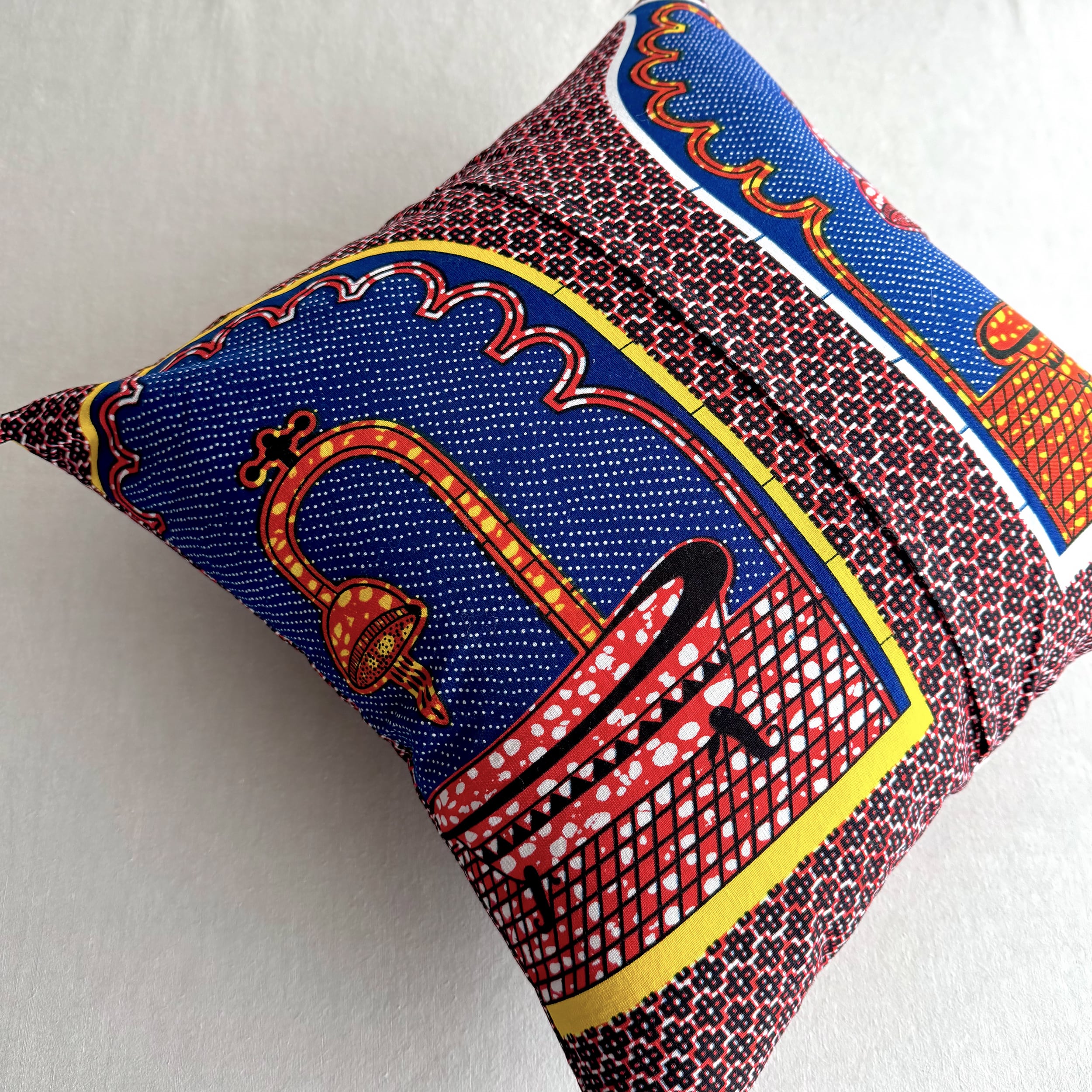 アフリカ布のみでお作りしたクッションカバー。