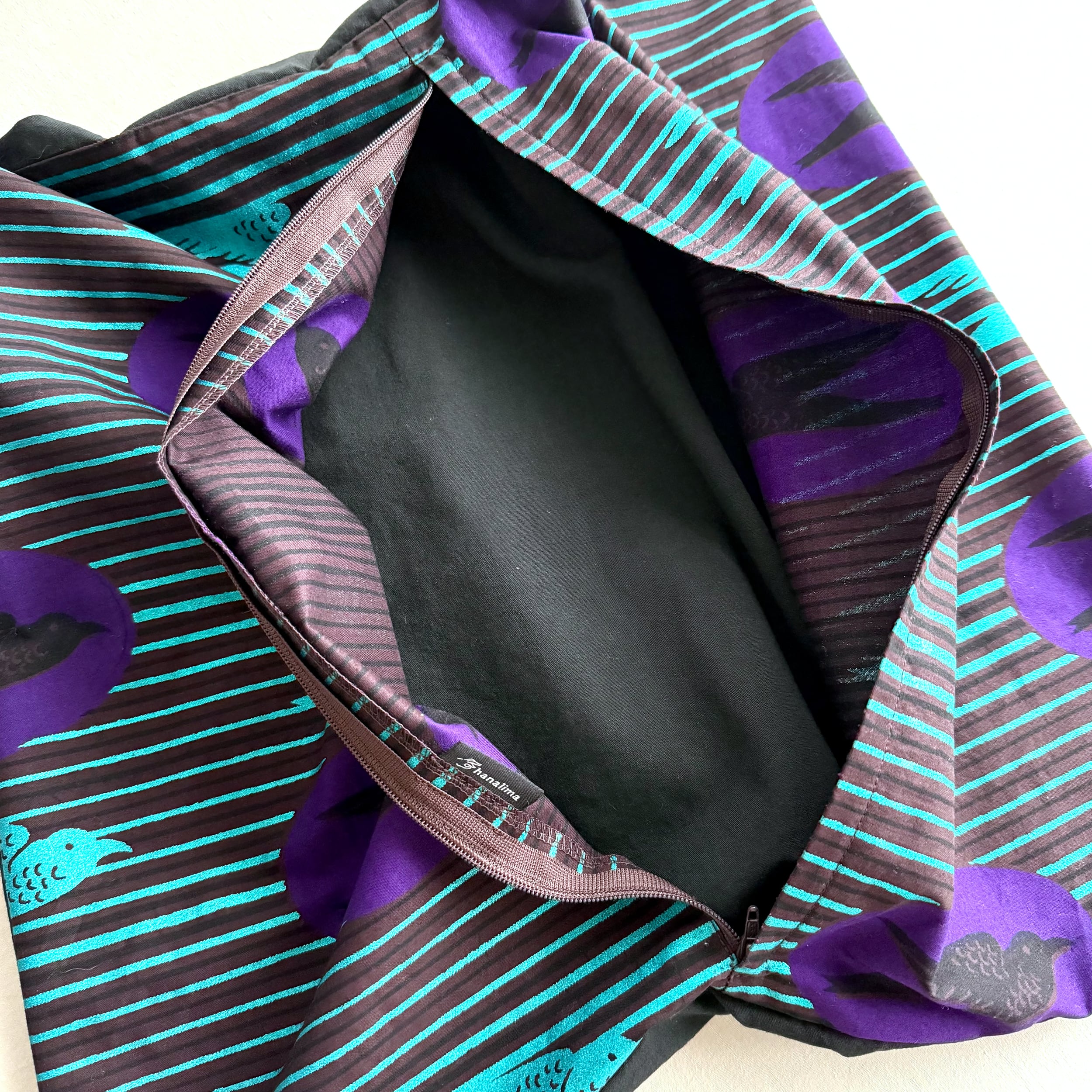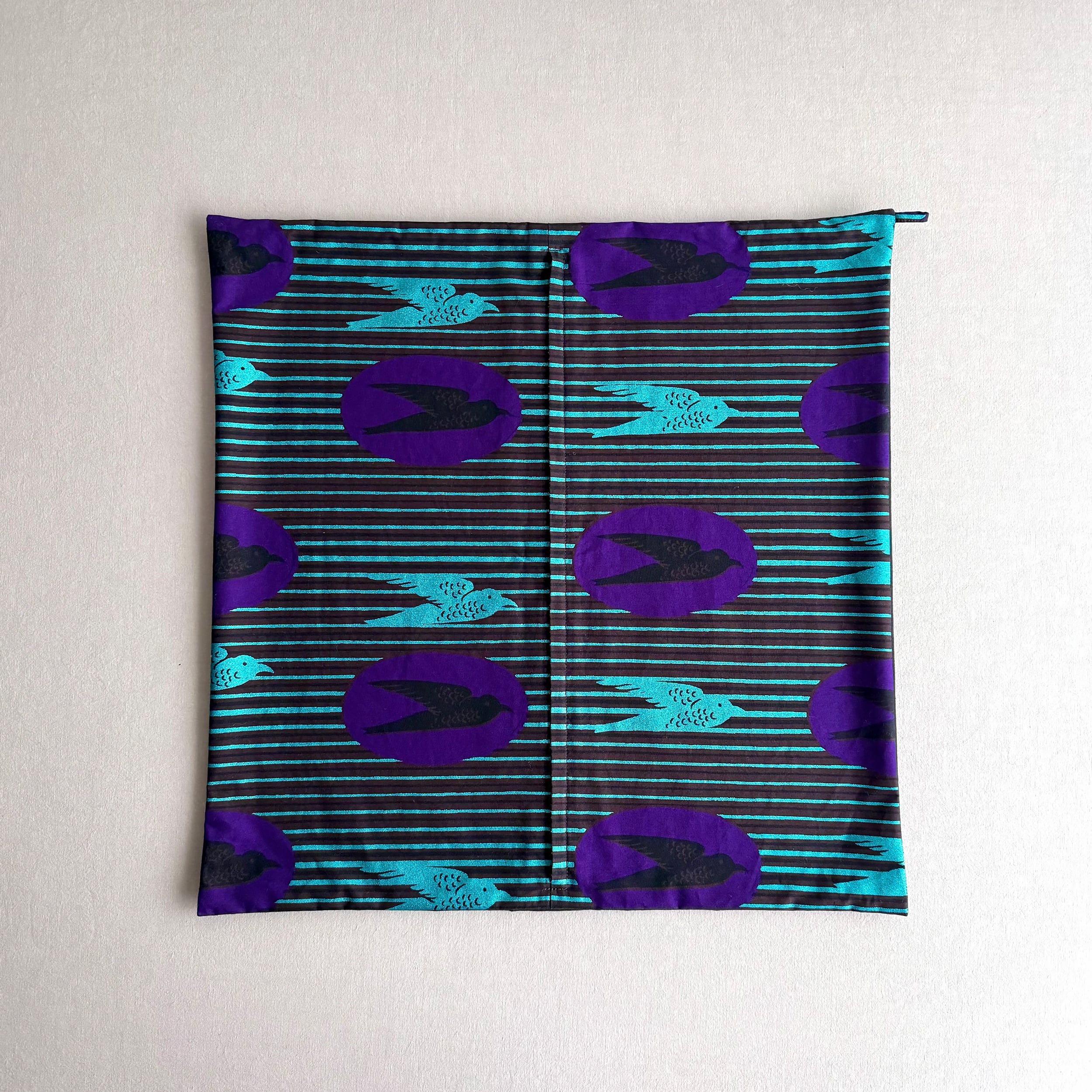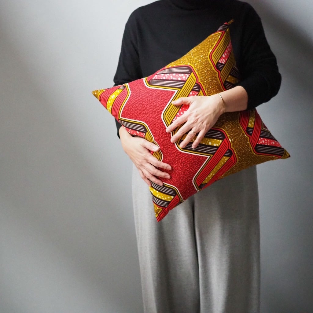 アフリカ布と無地の組み合わせでお作りしたクッションカバー。