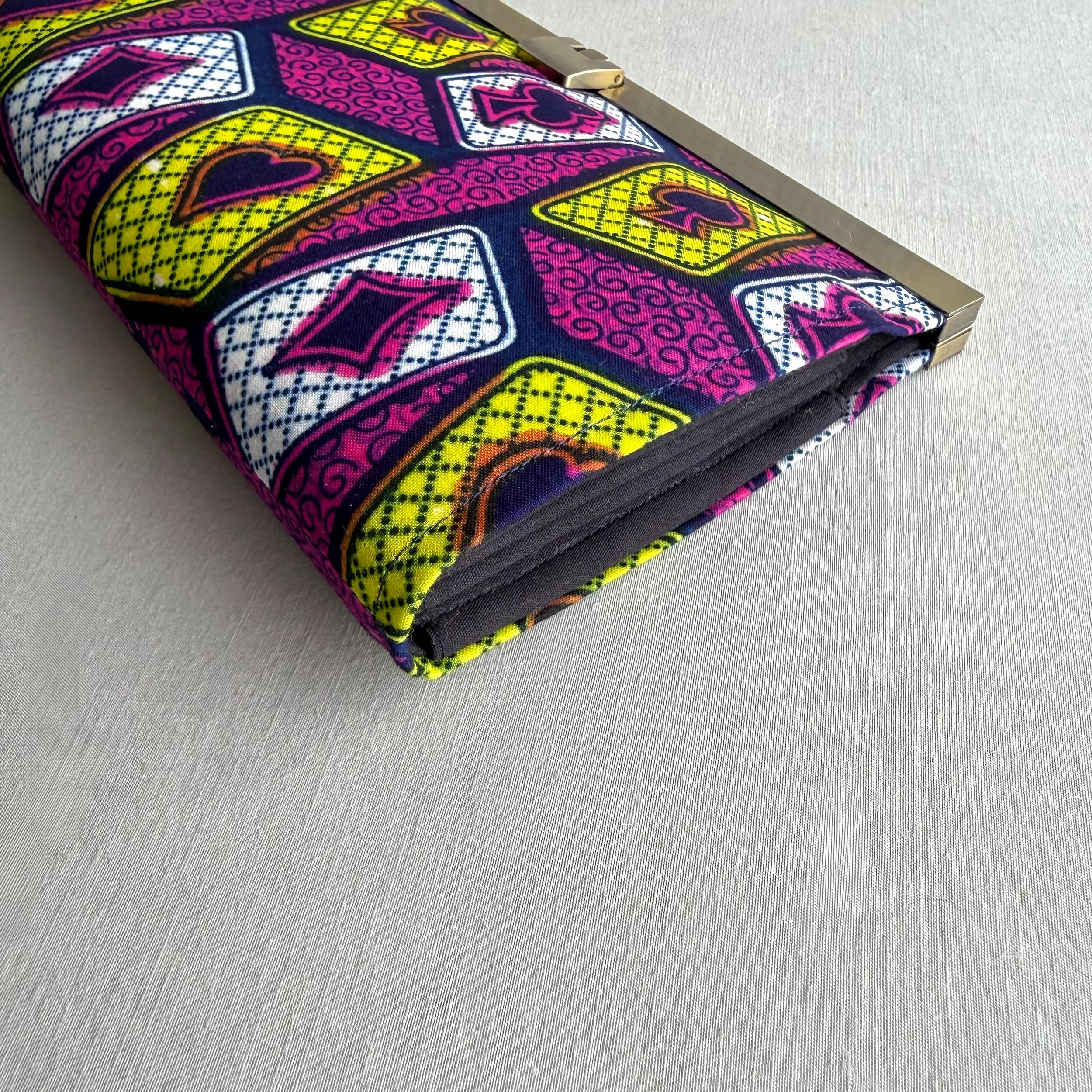 開閉がスムーズな口金式の長財布。