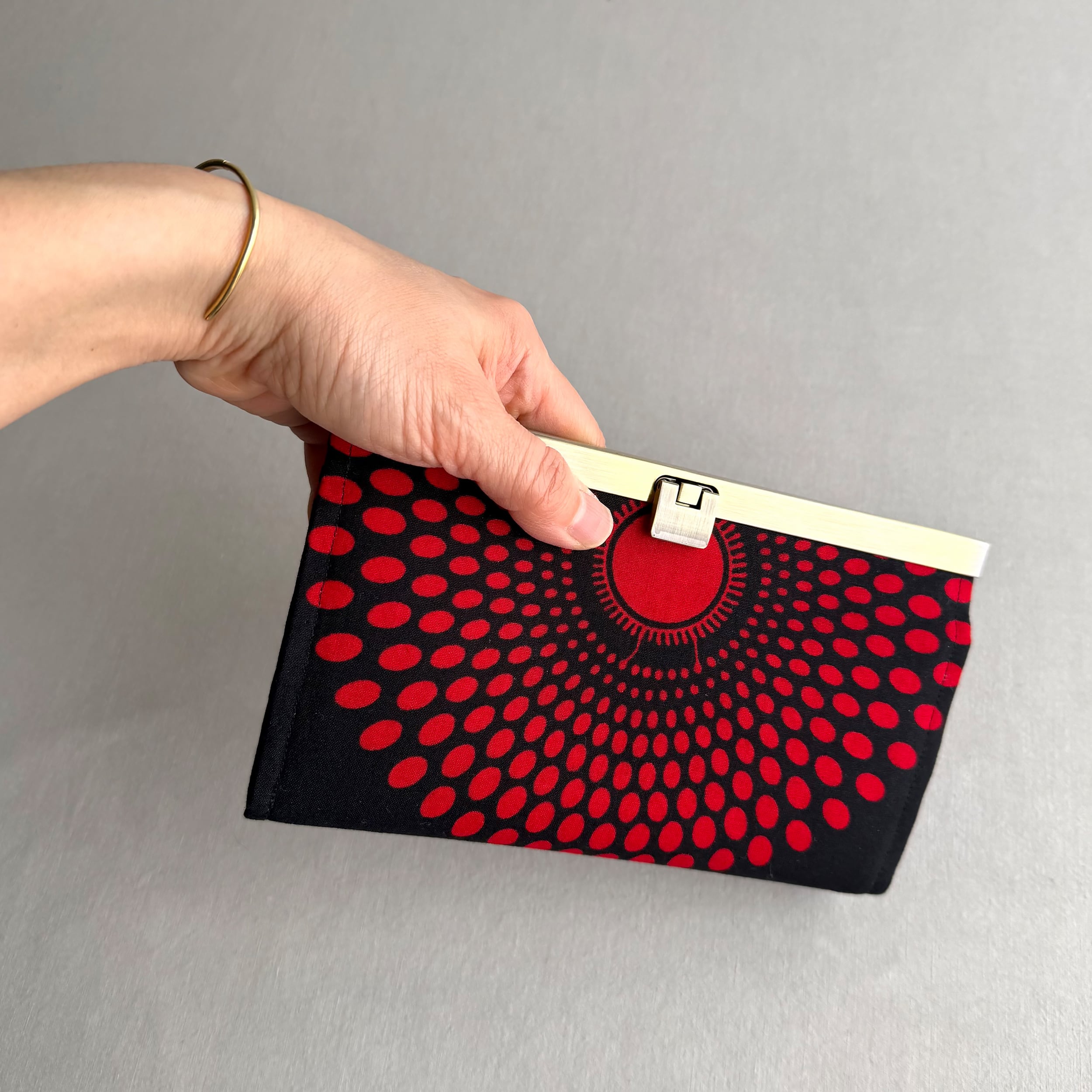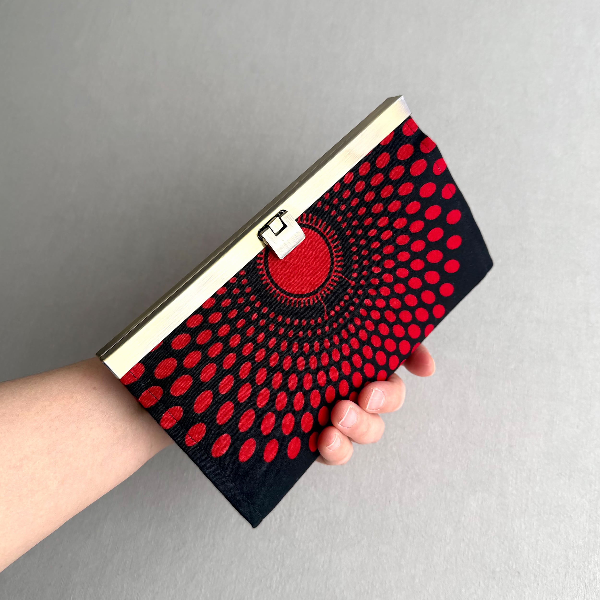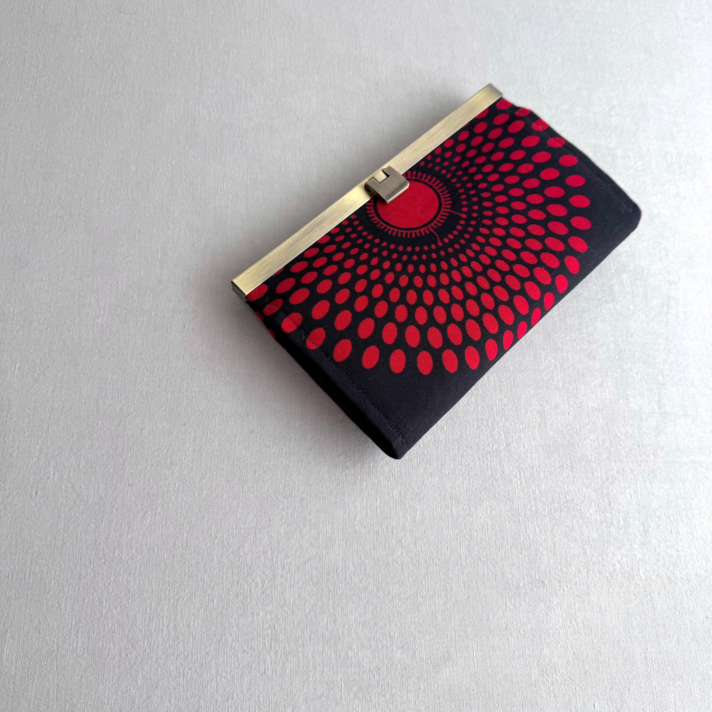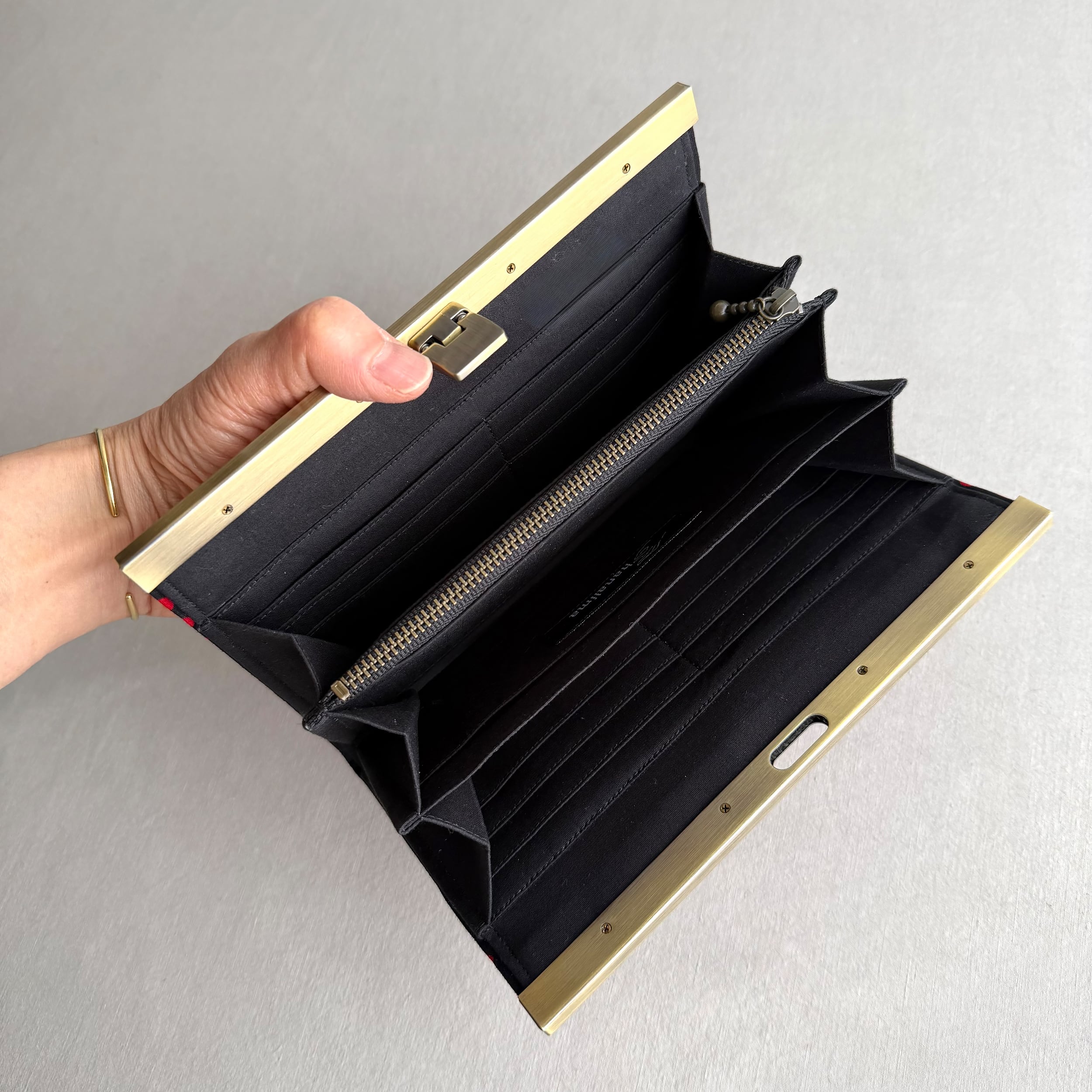 開閉がスムーズな口金式の長財布。