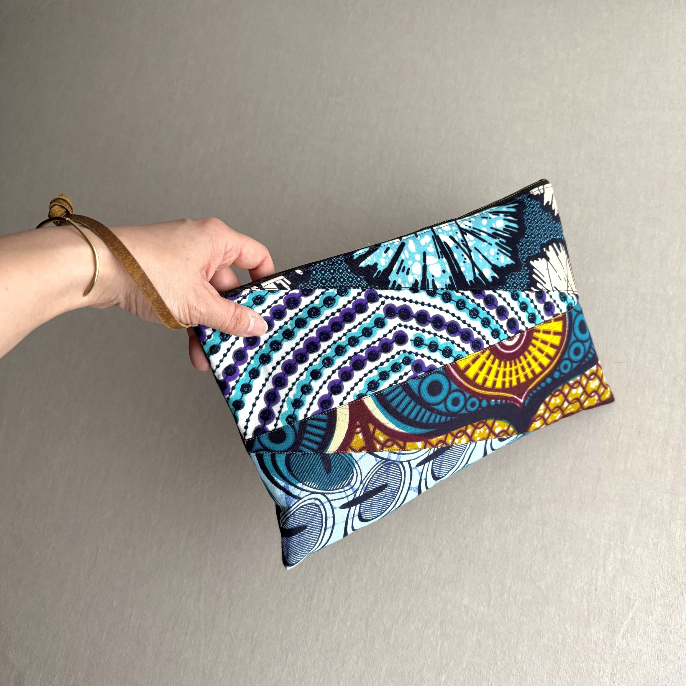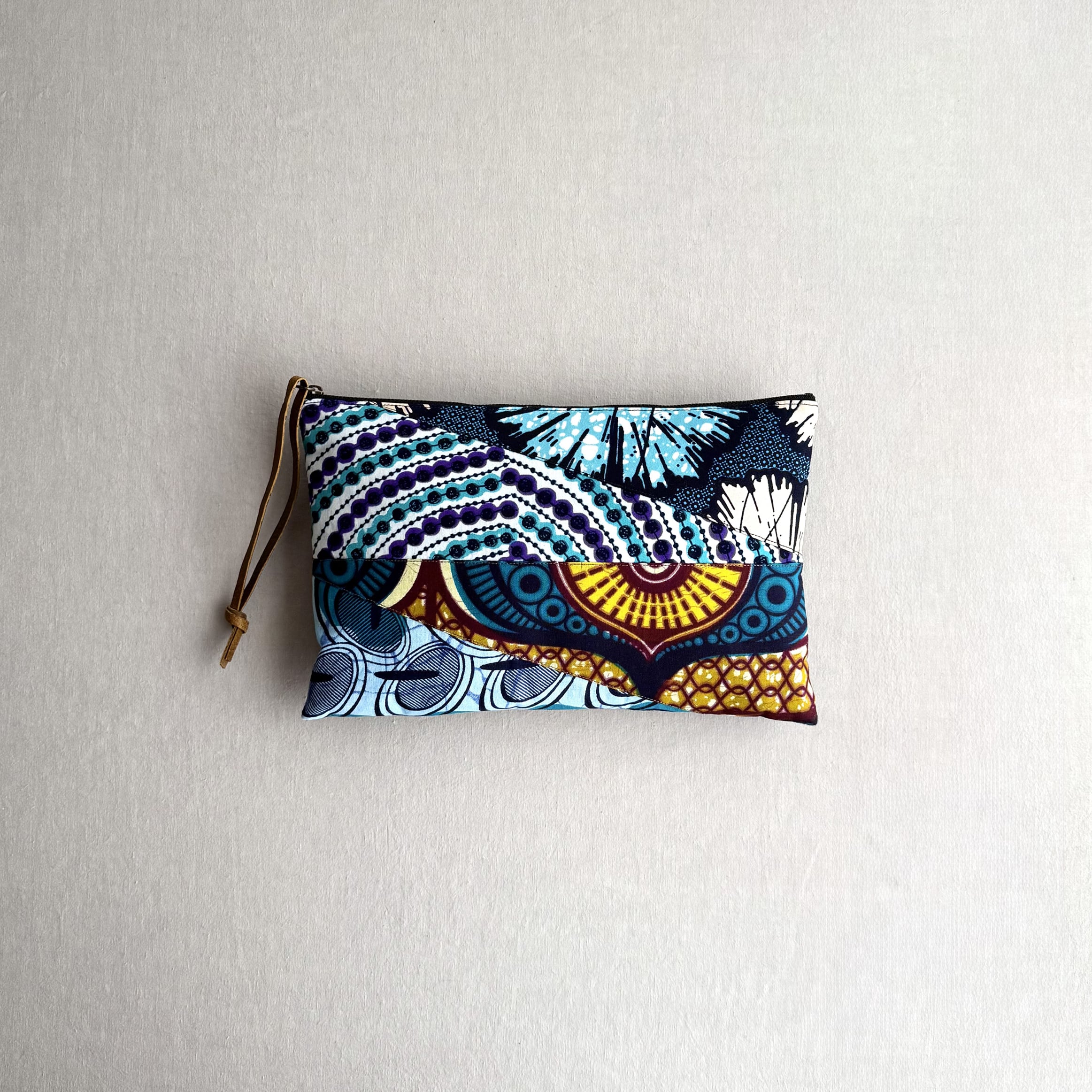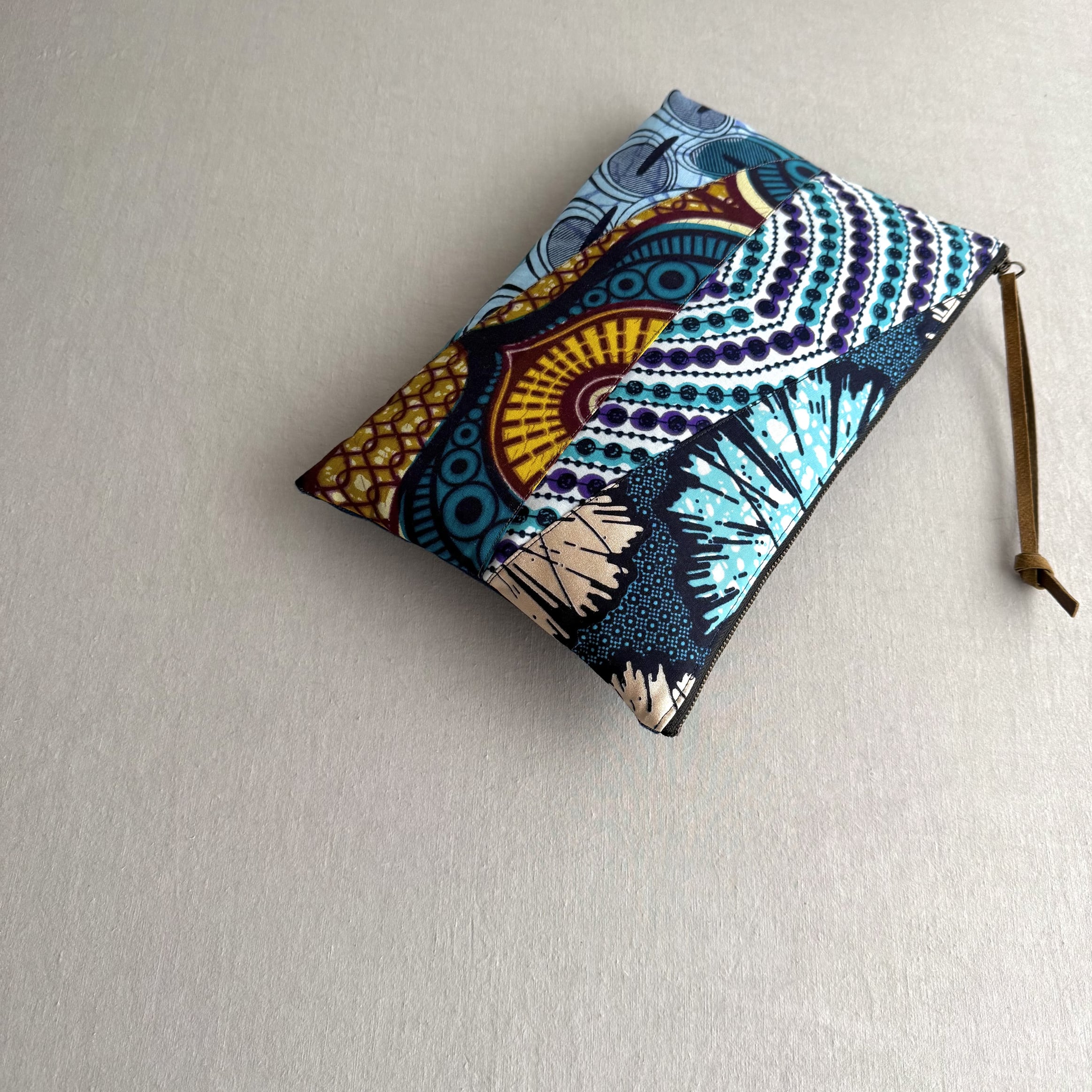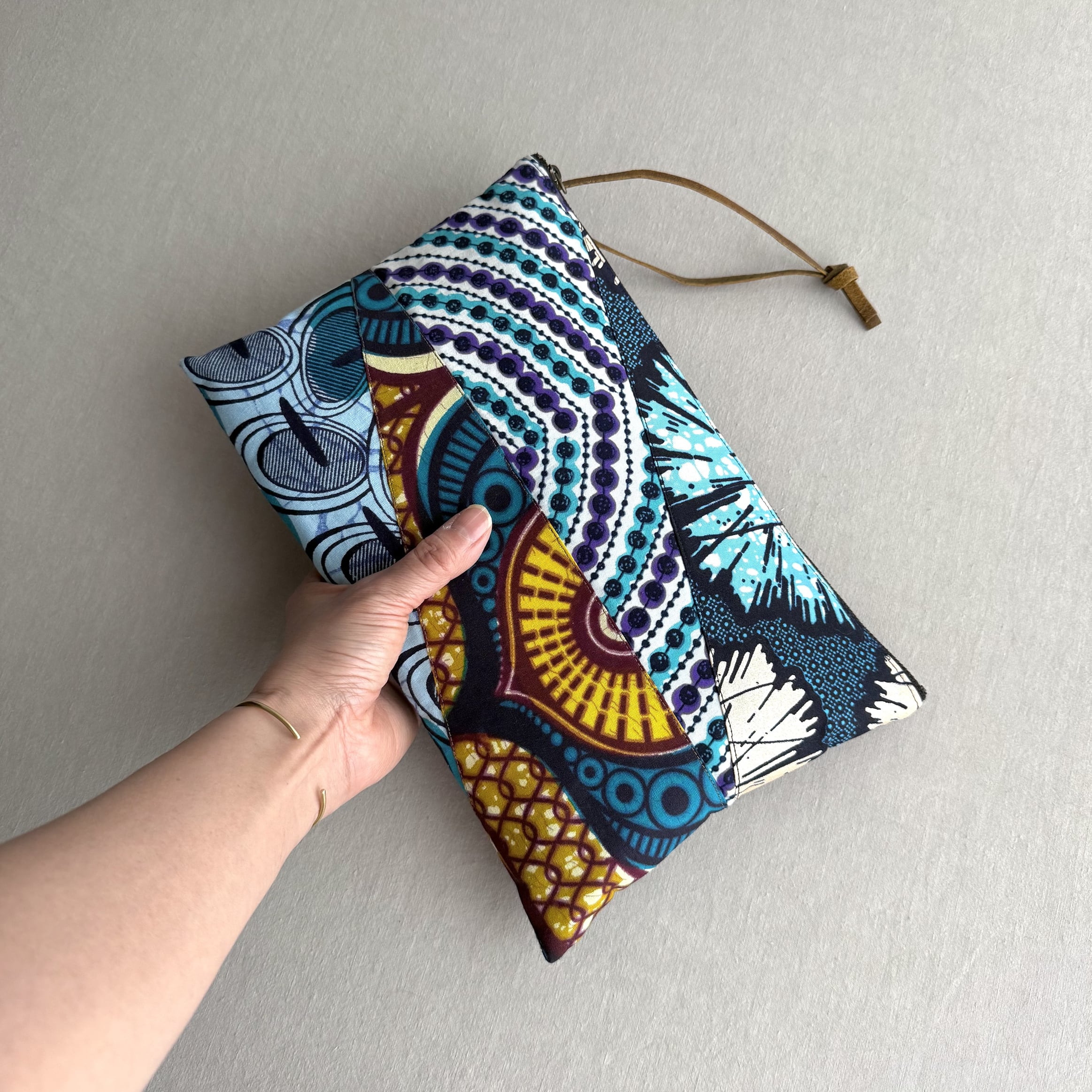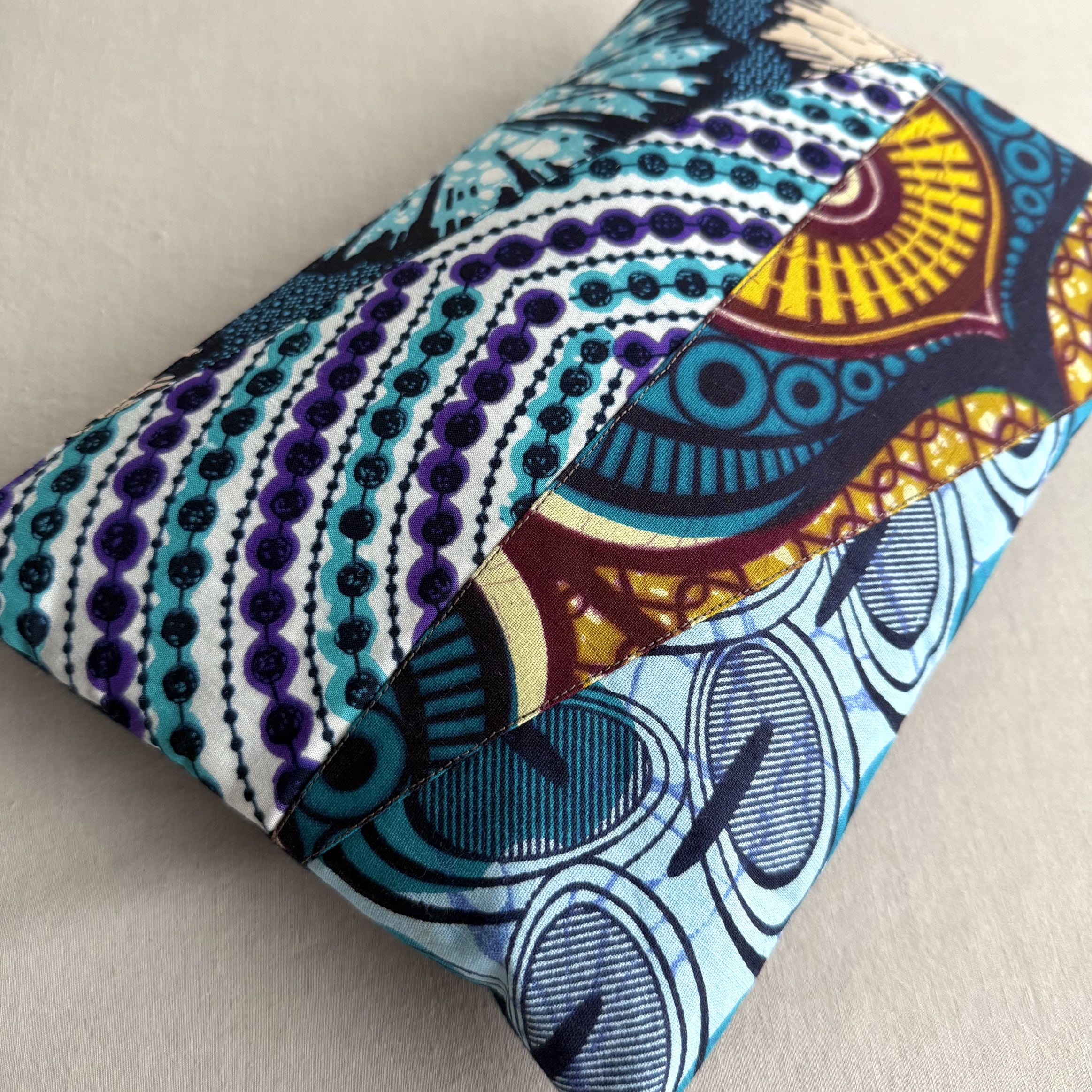 アフリカ布のハギレを計算の上つなぎ合わせた